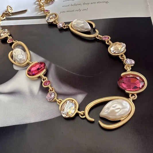 Glam O-Link Choker Rhinestone Collarbone Pendant Necklace, Long Layering Chain for Women, Sparkling Evening Party Jewelry