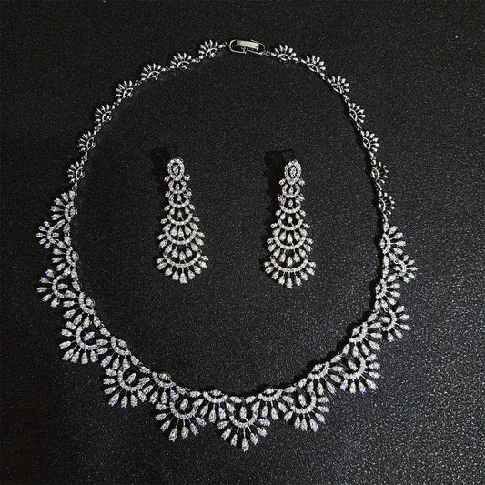 Romantic 2PCS Leaf Design Statement Jewelry Set For Women Wedding Party Full Zircon Dubai Bridal jewelry Set